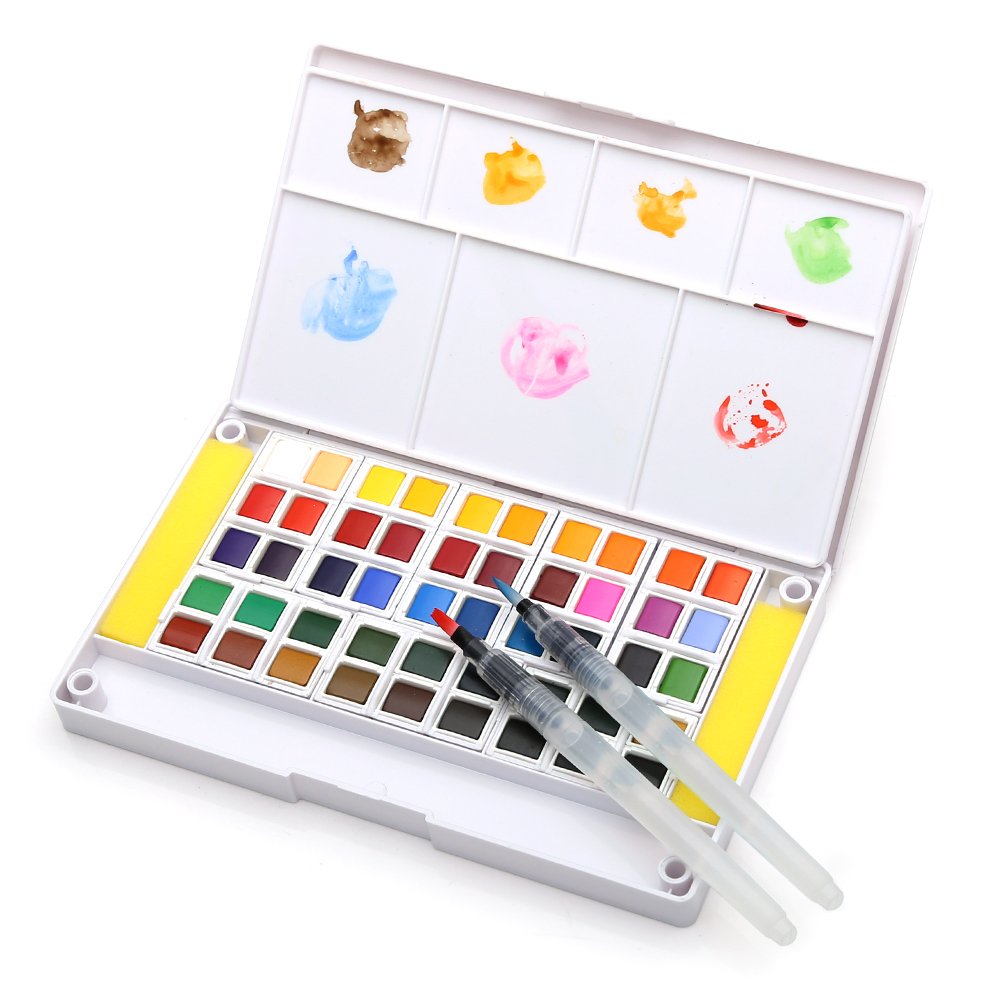 Dainayw Watercolor Paint Set Professional 48 Assorted Watercolors Perfect Watercolor Pan Set Travel Watercolor Kit Includes 2 Water Brushes 2